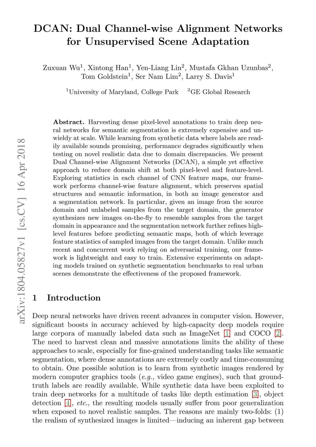 DCAN: Dual Channel-wise Alignment Networks for Unsupervised Scene