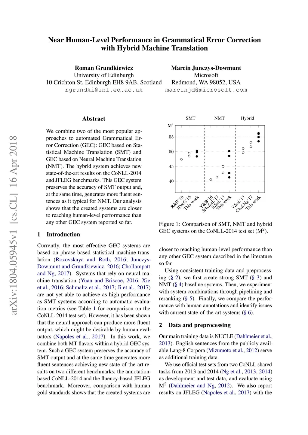 Near Human-Level Performance in Grammatical Error Correction with Hybrid