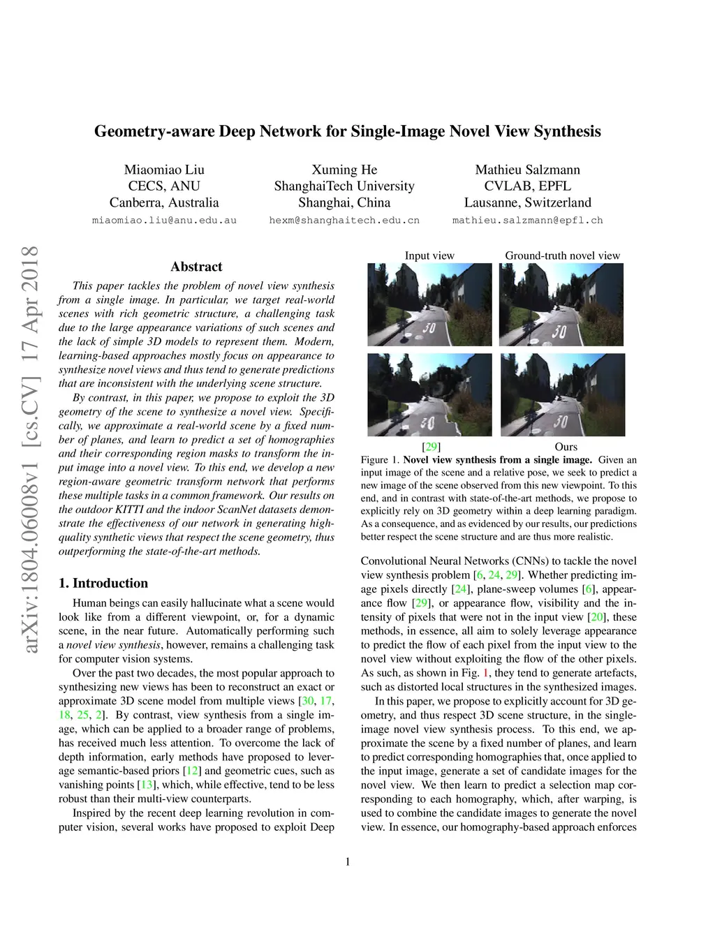 Geometry-aware Deep Network for Single-Image Novel View Synthesis