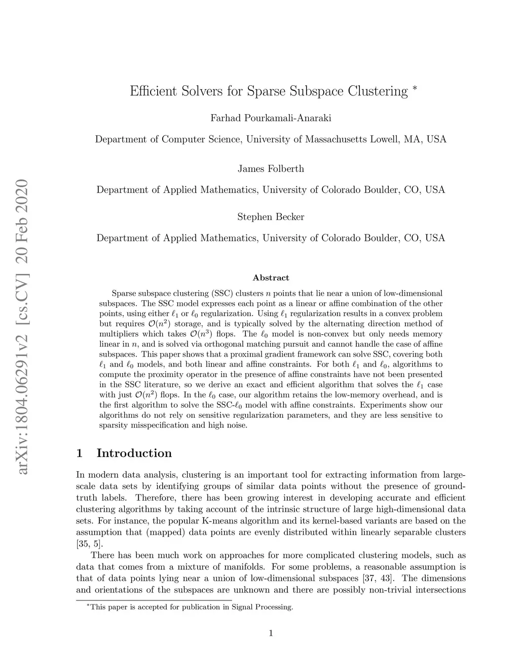 Sparse subspace clustering (SSC) clusters points that lie near a union of low-dimensional subspaces. The SSC model expresses each point as a linear or affine combination of the other points, using either or regularization. Using regularization results in a convex problem but requires storage, and is typically solved by the alternating direction method of multipliers which takes flops. The model is non-convex but only needs memory linear in , and is solved via orthogonal matching pursuit and cannot handle the case of affine subspaces. This paper shows that a proximal gradient framework can solve SSC, covering both and models, and both linear and affine constraints. For both and , algorithms to compute the proximity operator in the presence of affine constraints have not been presented in the SSC literature, so we derive an exact and efficient algorithm that solves the case with just flops. In the case, our algorithm retains the low-memory overhead, and is the first algorithm to solve the SSC- model with affine constraints. Experiments show our algorithms do not rely on sensitive regularization parameters, and they are less sensitive to sparsity misspecification and high noise.