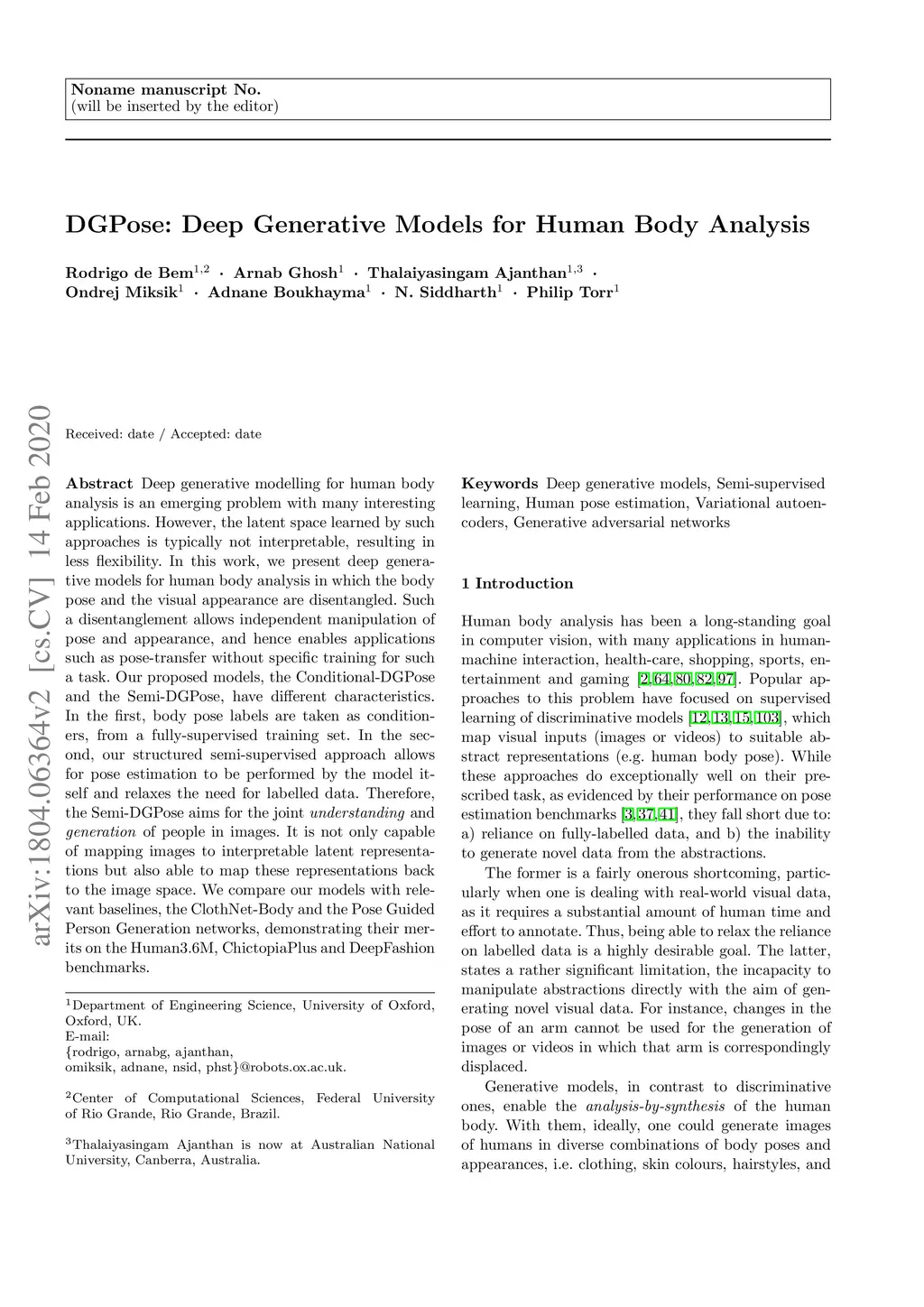 DGPose: Deep Generative Models for Human Body Analysis