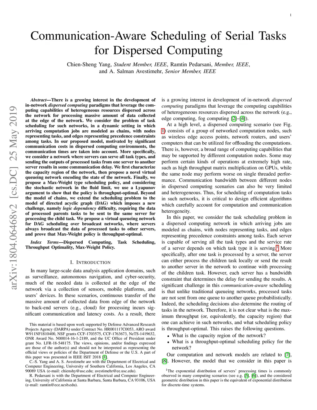 Communication-Aware Scheduling of Serial Tasks for Dispersed Computing