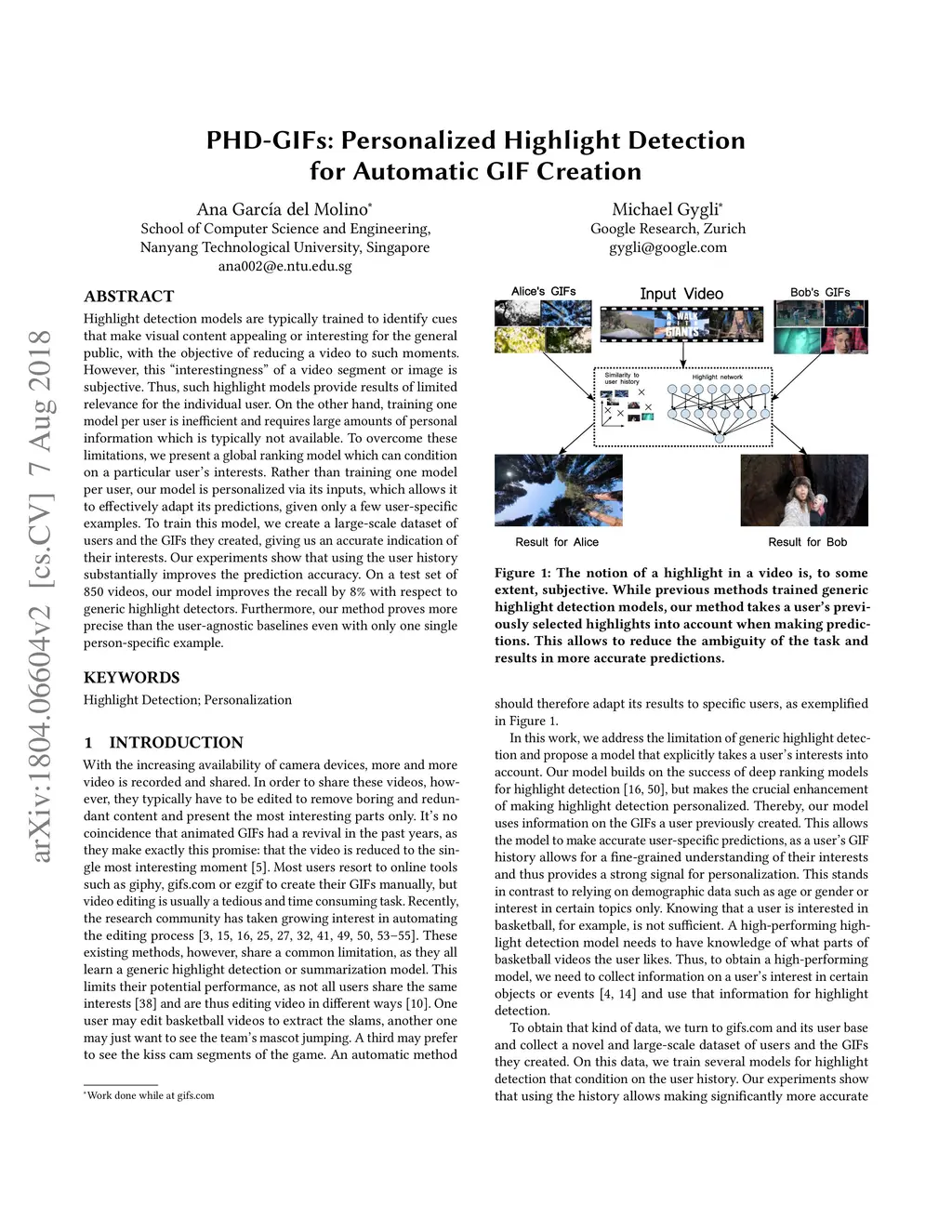 PHD-GIFs: Personalized Highlight Detection for Automatic GIF Creation