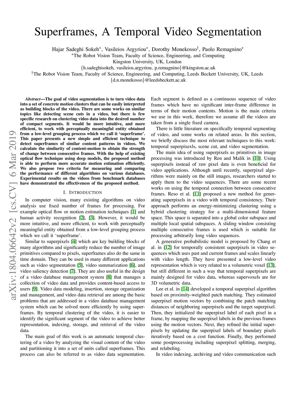 Superframes, A Temporal Video Segmentation