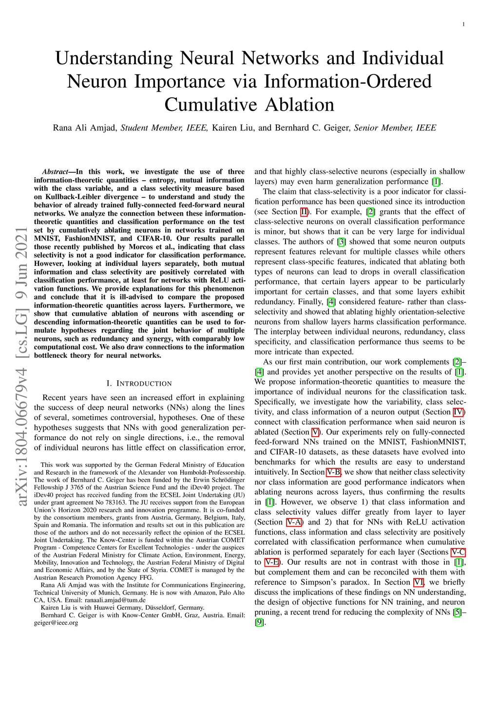 Understanding Neural Networks and Individual Neuron Importance via