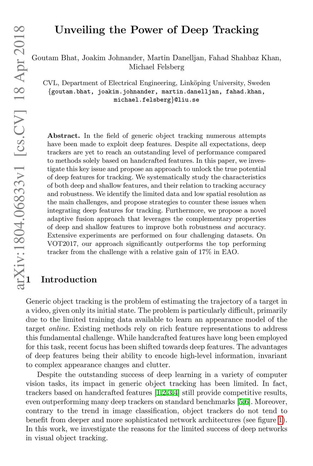 In the field of generic object tracking numerous attempts have been made to exploit deep features. Despite all expectations, deep trackers are yet to reach an outstanding level of performance compared to methods solely based on handcrafted features. In this paper, we investigate this key issue and propose an approach to unlock the true potential of deep features for tracking. We systematically study the characteristics of both deep and shallow features, and their relation to tracking accuracy and robustness. We identify the limited data and low spatial resolution as the main challenges, and propose strategies to counter these issues when integrating deep features for tracking. Furthermore, we propose a novel adaptive fusion approach that leverages the complementary properties of deep and shallow features to improve both robustness and accuracy. Extensive experiments are performed on four challenging datasets. On VOT2017, our approach significantly outperforms the top performing tracker from the challenge with a relative gain of 17% in EAO.