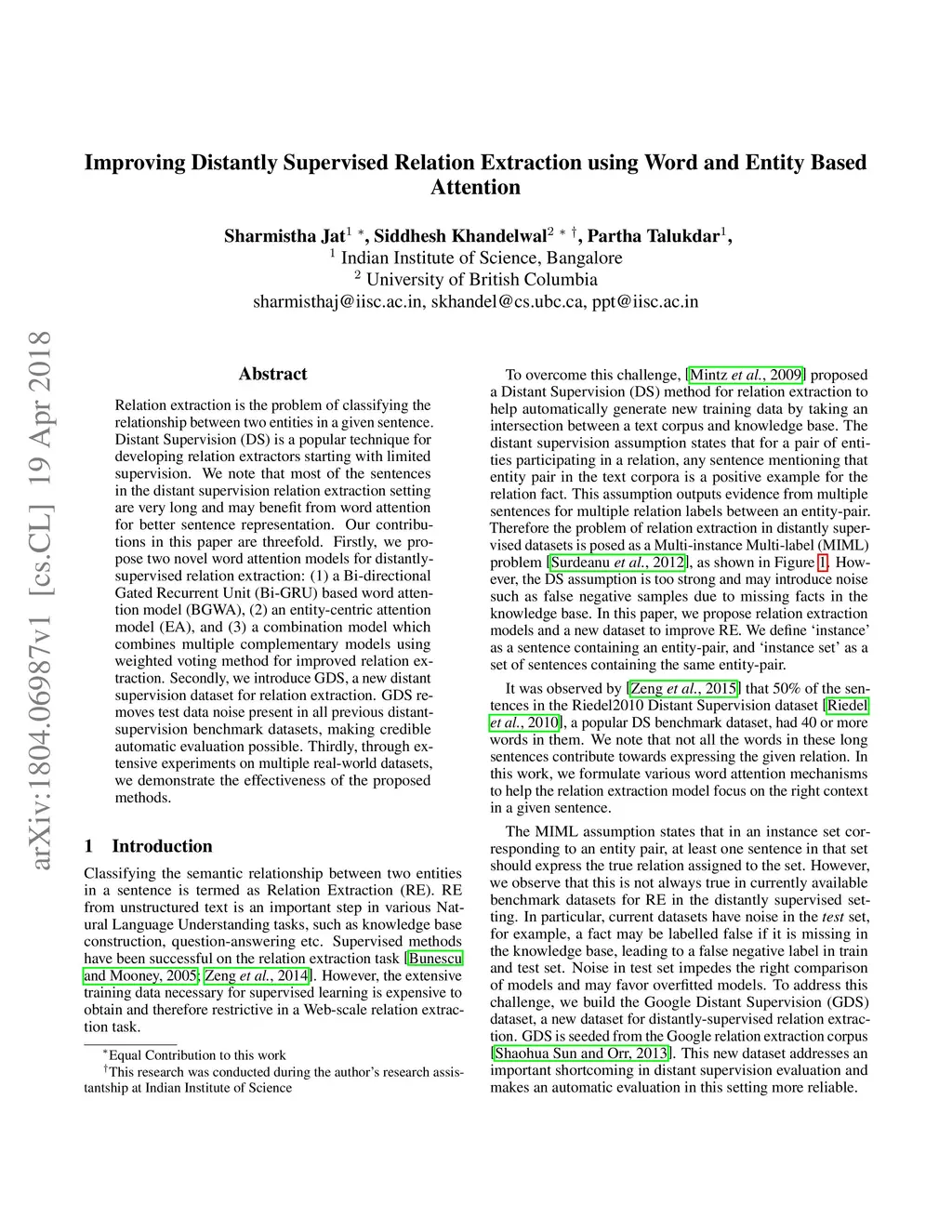 Improving Distantly Supervised Relation Extraction using Word and Entity