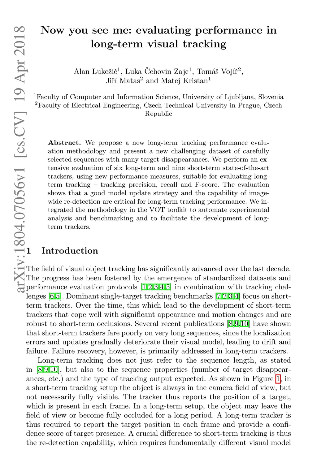 We propose a new long-term tracking performance evaluation methodology and present a new challenging dataset of carefully selected sequences with many target disappearances. We perform an extensive evaluation of six long-term and nine short-term state-of-the-art trackers, using new performance measures, suitable for evaluating long-term tracking - tracking precision, recall and F-score. The evaluation shows that a good model update strategy and the capability of image-wide re-detection are critical for long-term tracking performance. We integrated the methodology in the VOT toolkit to automate experimental analysis and benchmarking and to facilitate the development of long-term trackers.