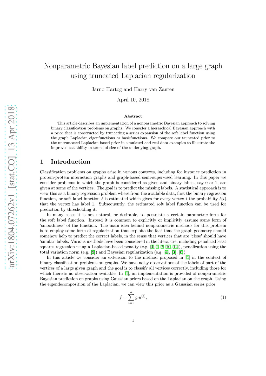 This article describes an implementation of a nonparametric Bayesian approach to solving binary classification problems on graphs. We consider a hierarchical Bayesian approach with a prior that is constructed by truncating a series expansion of the soft label function using the graph Laplacian eigenfunctions as basis functions. We compare our truncated prior to the untruncated Laplacian based prior in simulated and real data examples to illustrate the improved scalability in terms of size of the underlying graph.