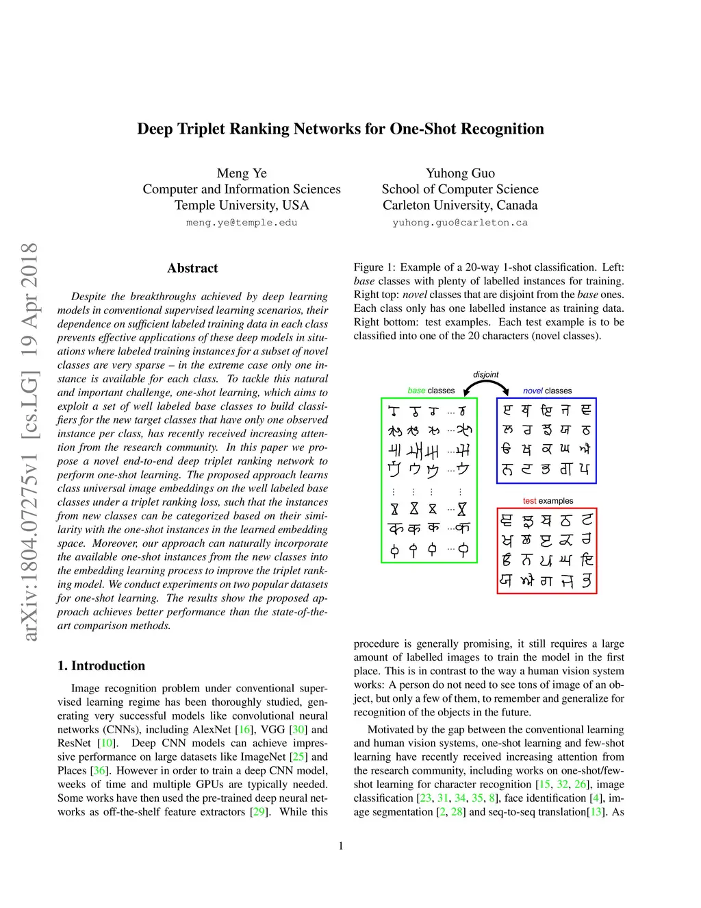 Deep Triplet Ranking Networks for One-Shot Recognition