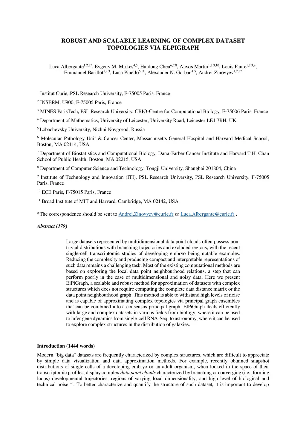 Robust And Scalable Learning Of Complex Dataset Topologies Via Elpigraph