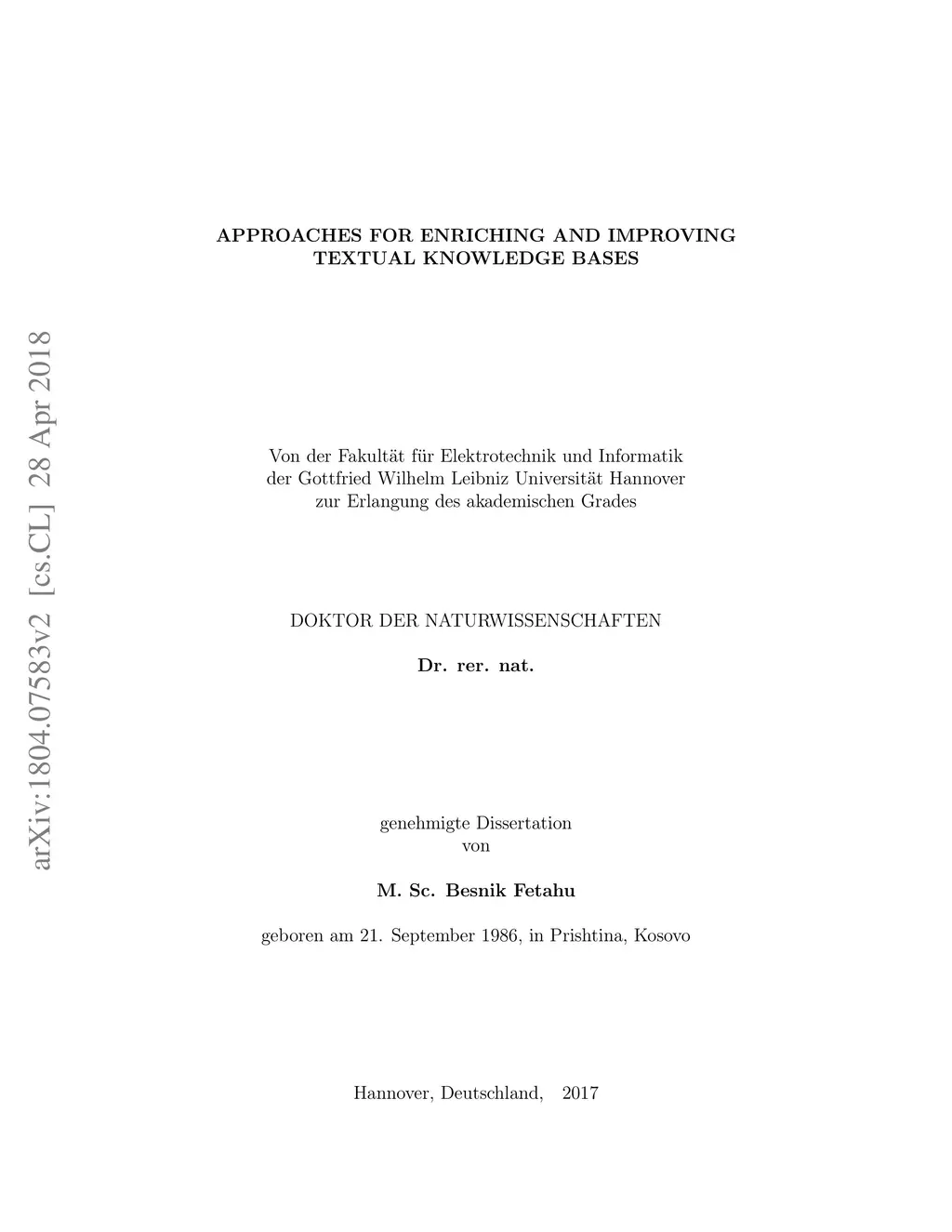 Approaches for Enriching and Improving Textual Knowledge Bases