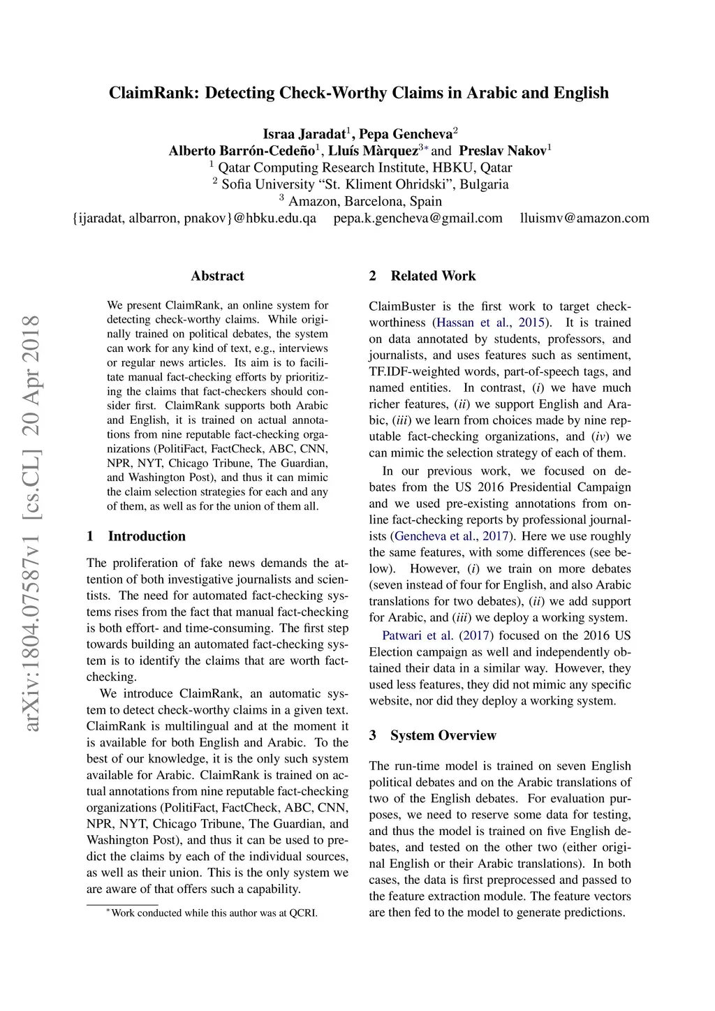 ClaimRank: Detecting Check-Worthy Claims in Arabic and English