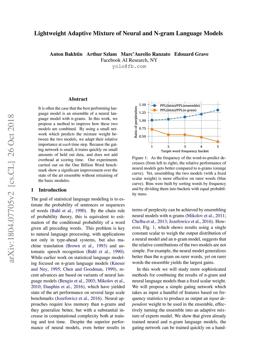 Lightweight Adaptive Mixture of Neural and N-gram Language Models