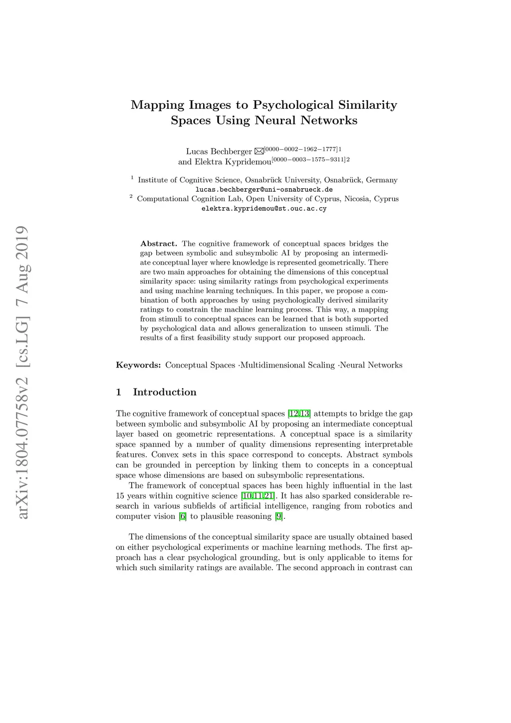 The cognitive framework of conceptual spaces bridges the gap between symbolic and subsymbolic AI by proposing an intermediate conceptual layer where knowledge is represented geometrically. There are two main approaches for obtaining the dimensions of this conceptual similarity space: using similarity ratings from psychological experiments and using machine learning techniques. In this paper, we propose a combination of both approaches by using psychologically derived similarity ratings to constrain the machine learning process. This way, a mapping from stimuli to conceptual spaces can be learned that is both supported by psychological data and allows generalization to unseen stimuli. The results of a first feasibility study support our proposed approach.