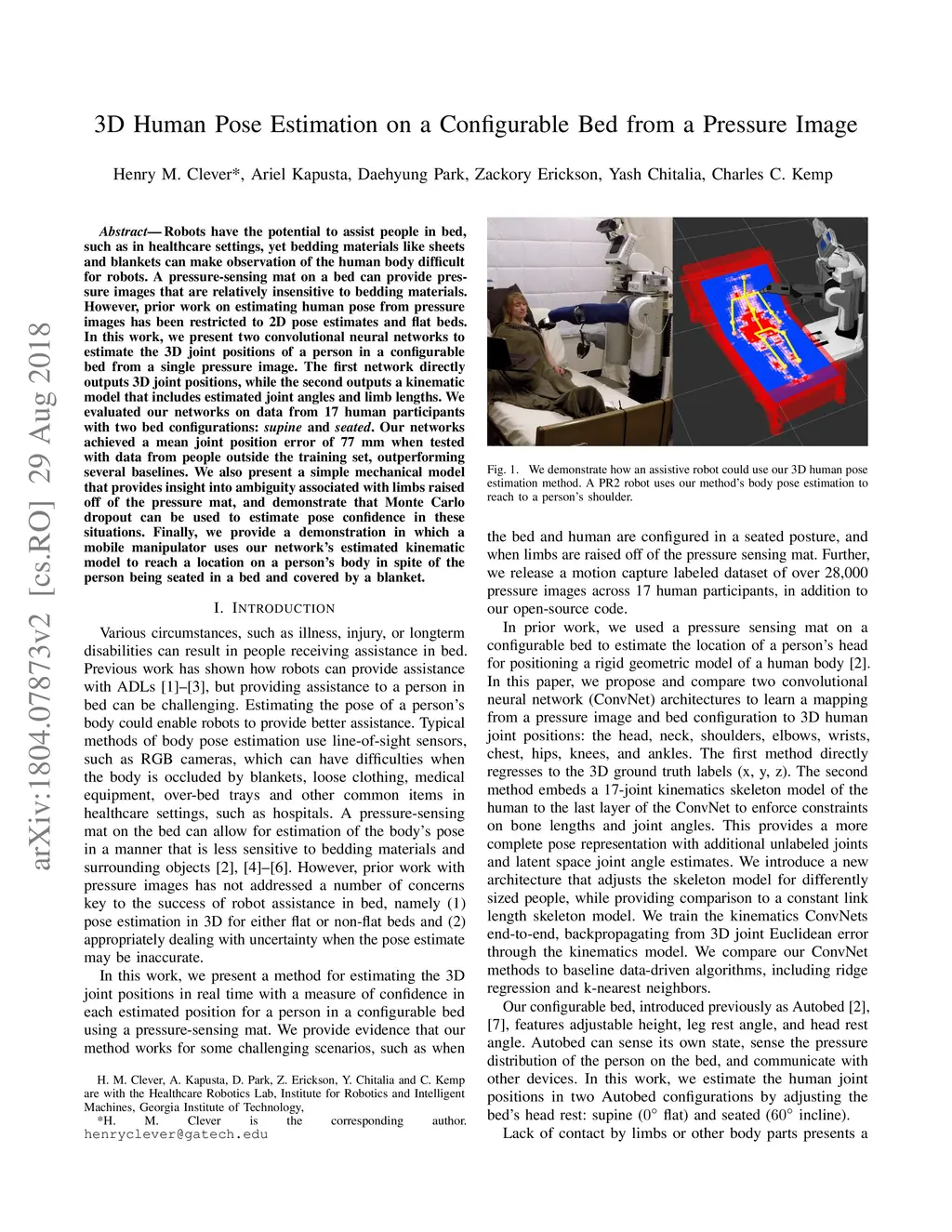 3D Human Pose Estimation on a Configurable Bed from a Pressure Image