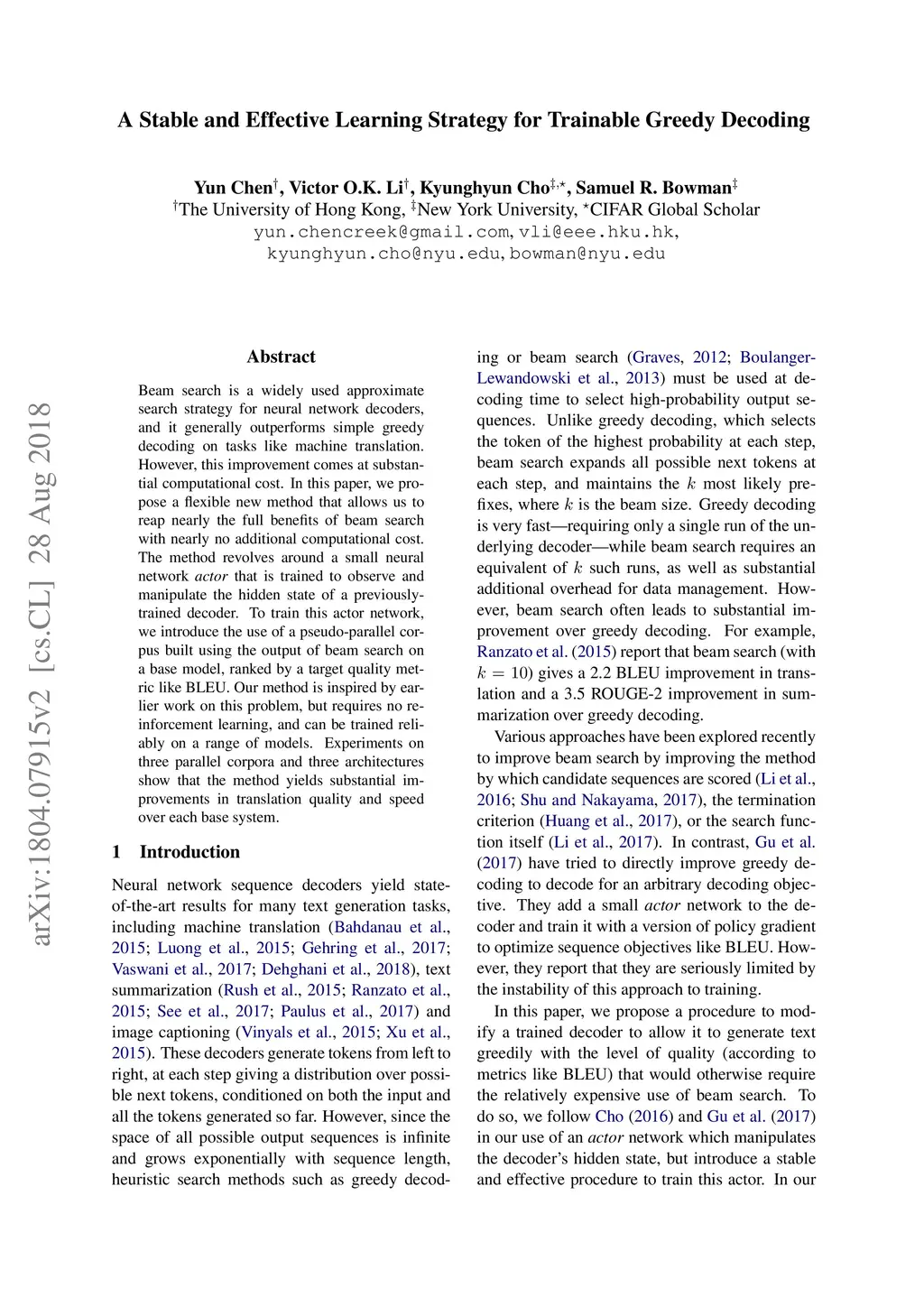 A Stable and Effective Learning Strategy for Trainable Greedy Decoding