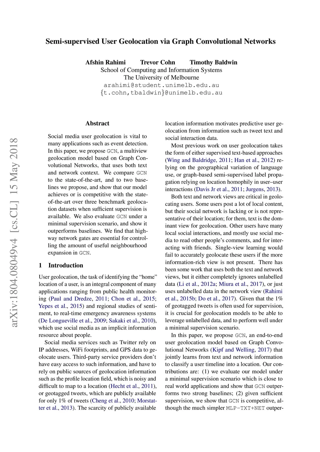 Semi-supervised User Geolocation via Graph Convolutional Networks