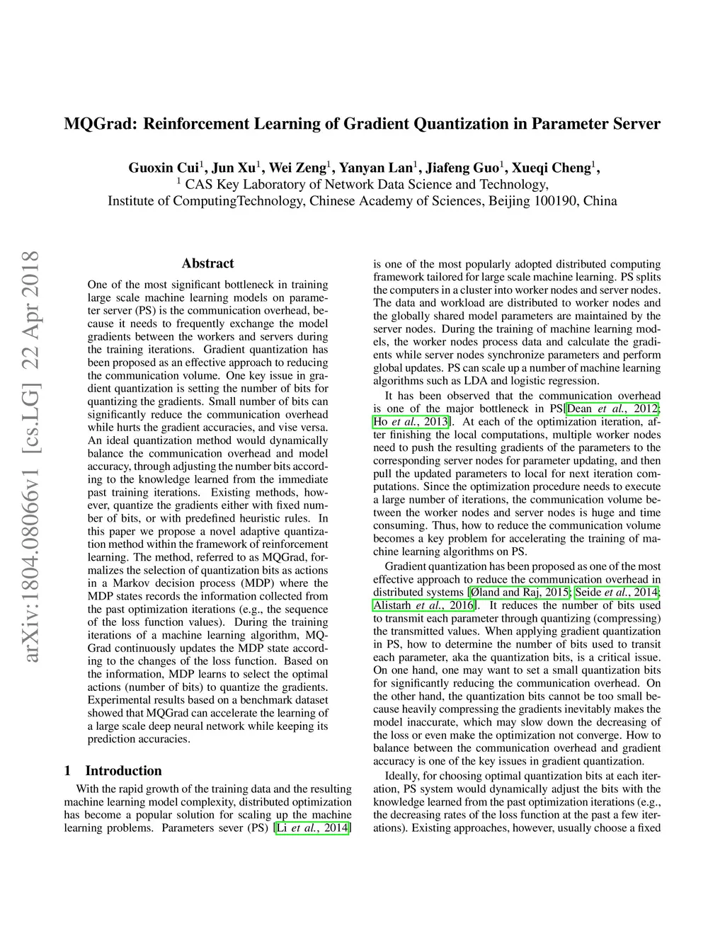 MQGrad: Reinforcement Learning of Gradient Quantization in Parameter