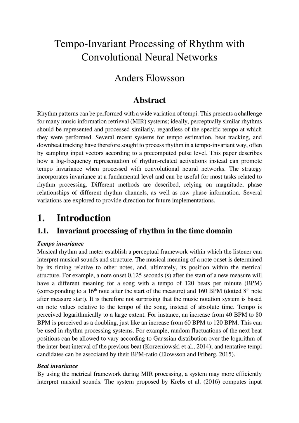 Tempo-Invariant Processing of Rhythm with Convolutional Neural Networks