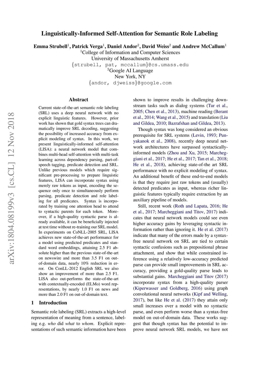 Linguistically-Informed Self-Attention for Semantic Role Labeling