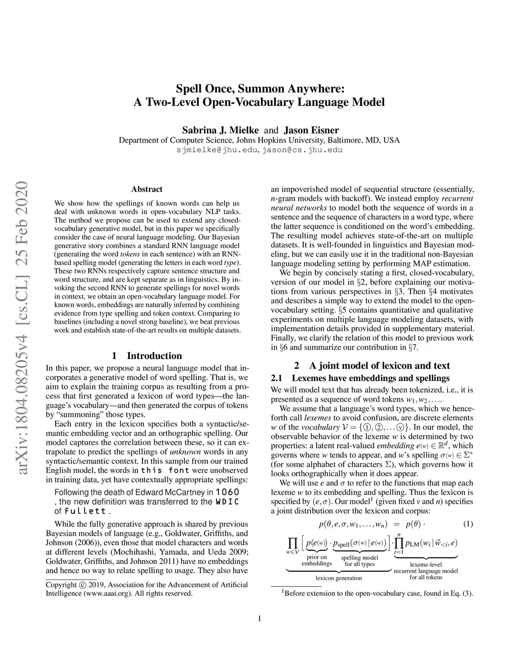 Spell Once, Summon Anywhere: A Two-Level Open-Vocabulary Language Model