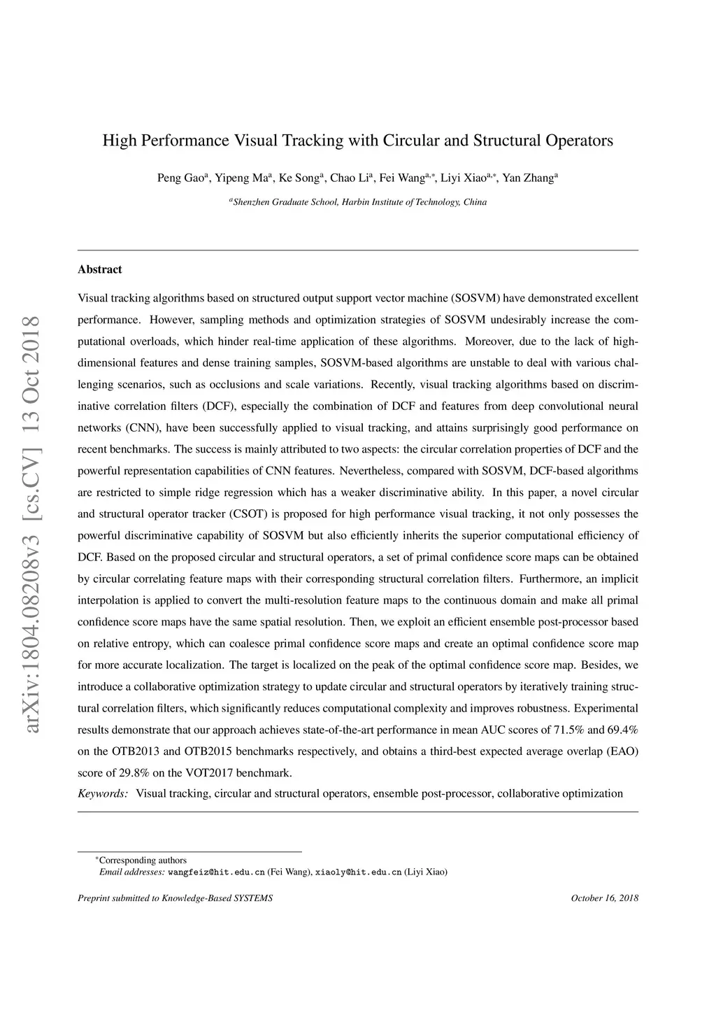 High Performance Visual Tracking with Circular and Structural Operators