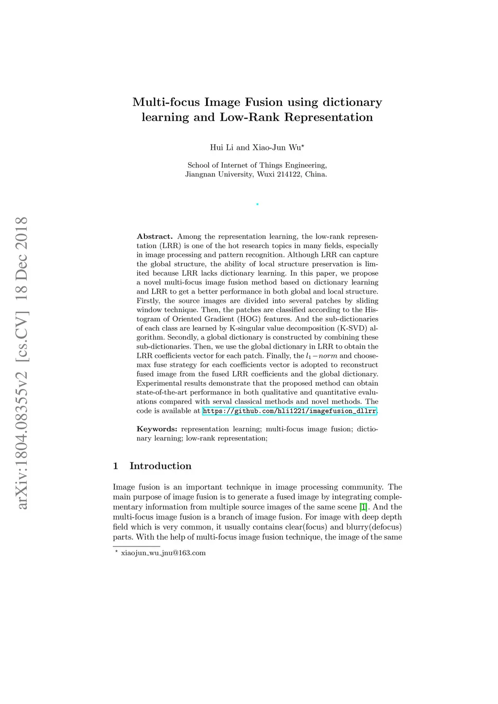 Multi-focus Image Fusion using dictionary learning and Low-Rank
