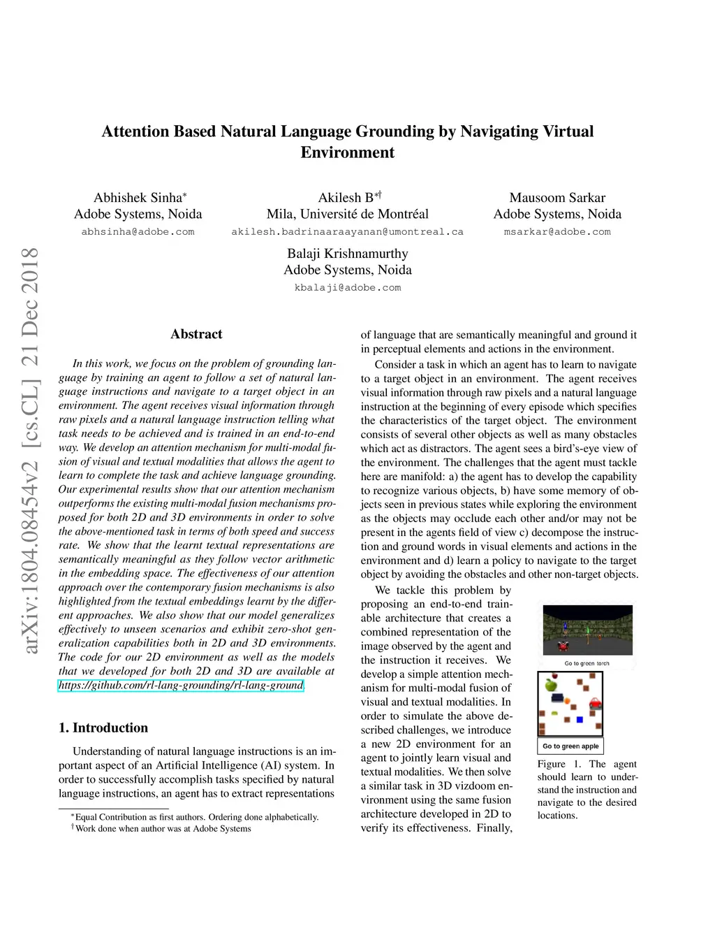 Attention Based Natural Language Grounding by Navigating Virtual