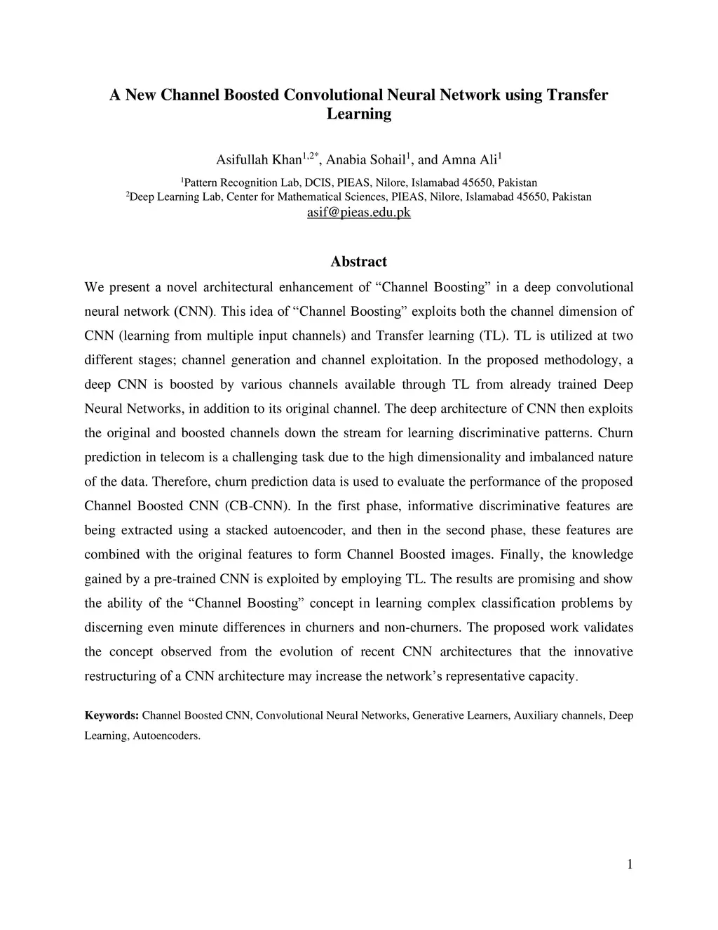 A New Channel Boosted Convolutional Neural Network using Transfer