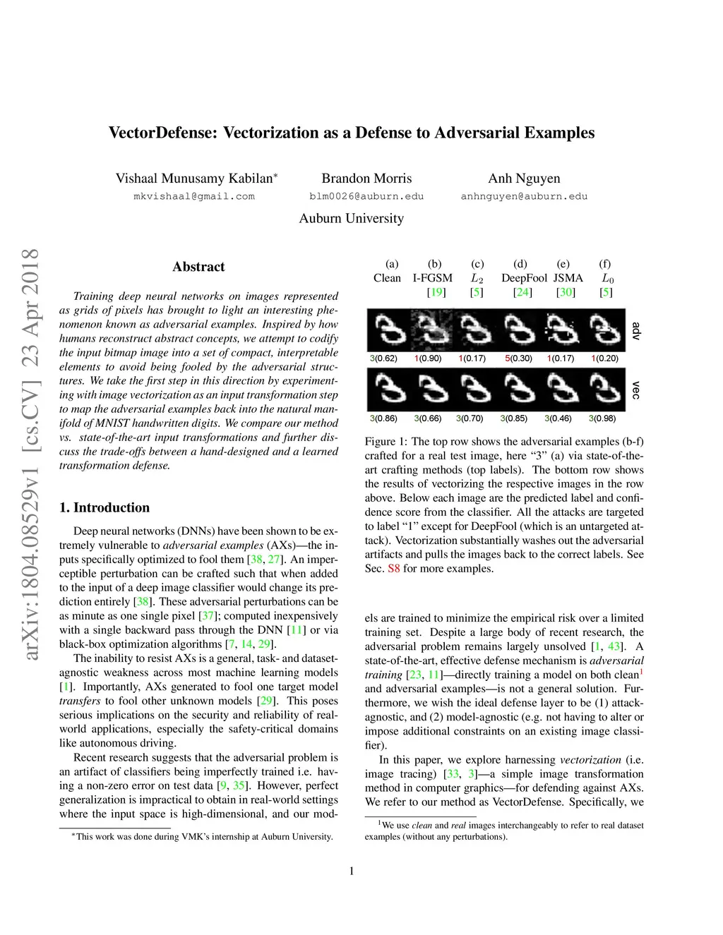 VectorDefense: Vectorization as a Defense to Adversarial Examples
