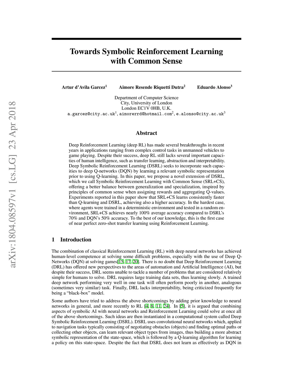 Towards Symbolic Reinforcement Learning with Common Sense