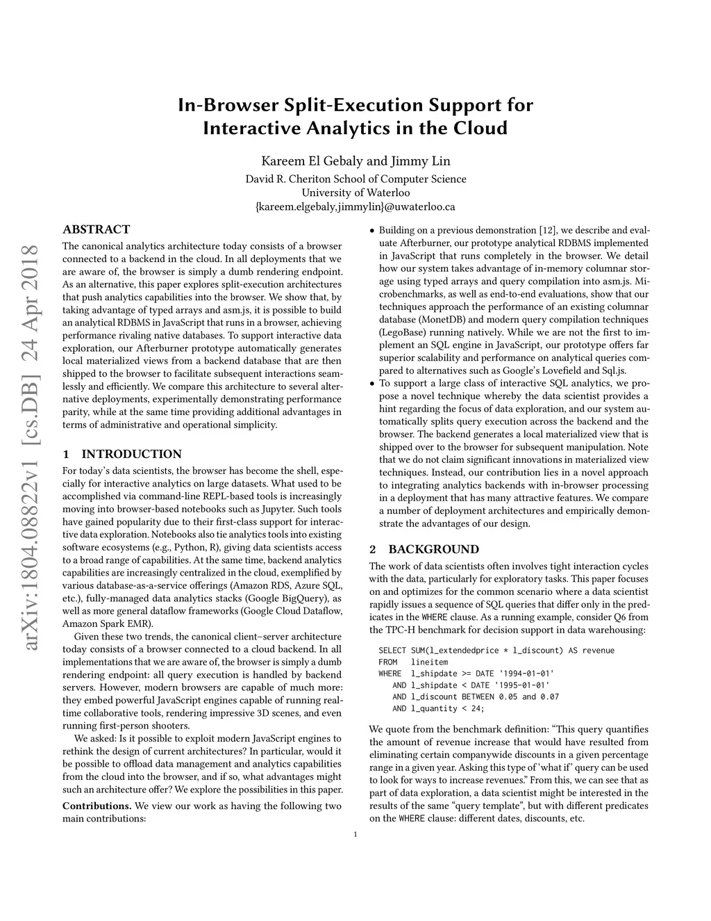 In-Browser Split-Execution Support for Interactive Analytics in the
