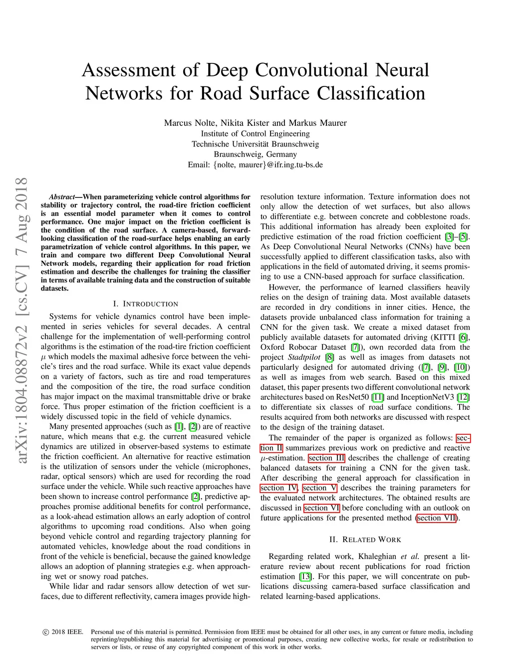 Assessment of Deep Convolutional Neural Networks for Road Surface