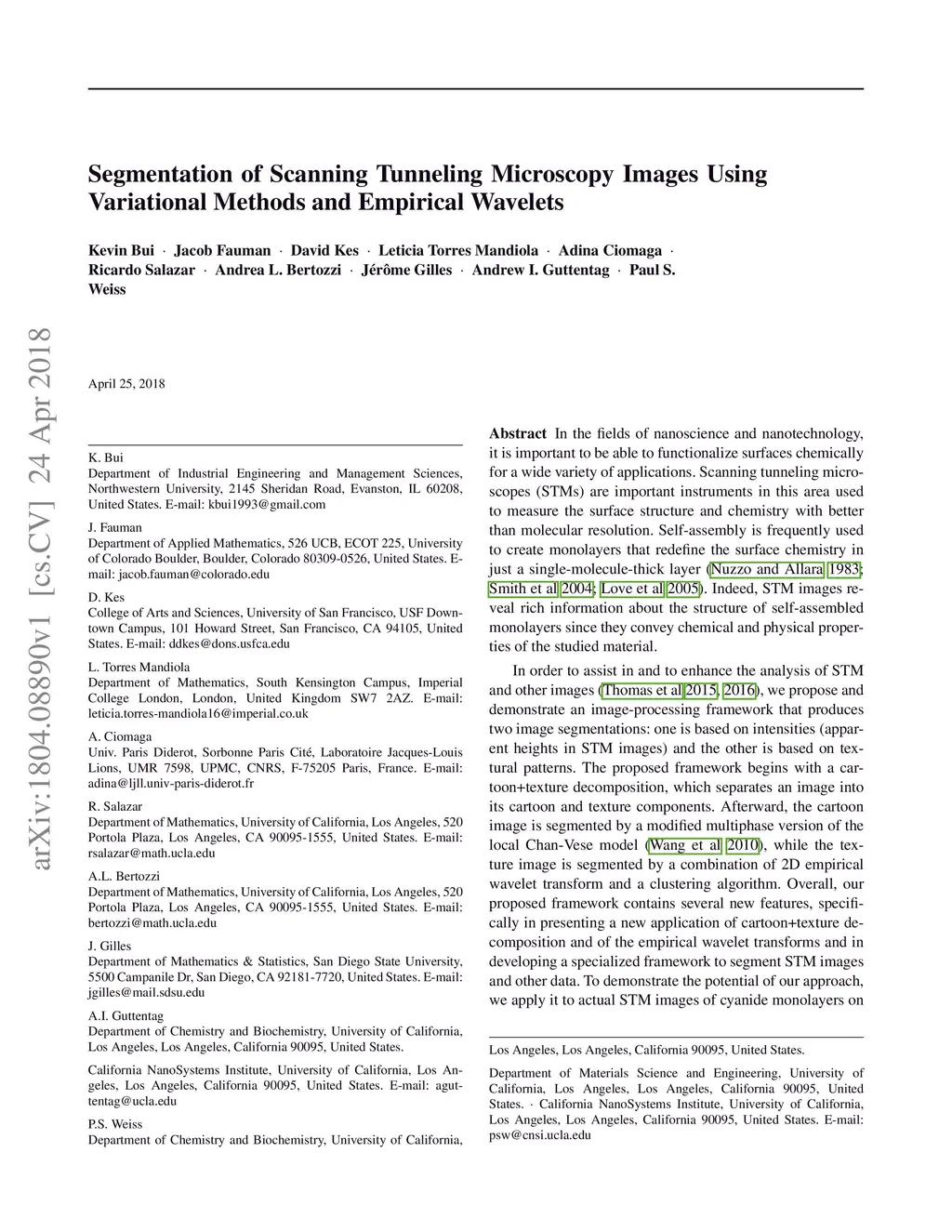 Segmentation of Scanning Tunneling Microscopy Images Using Variational