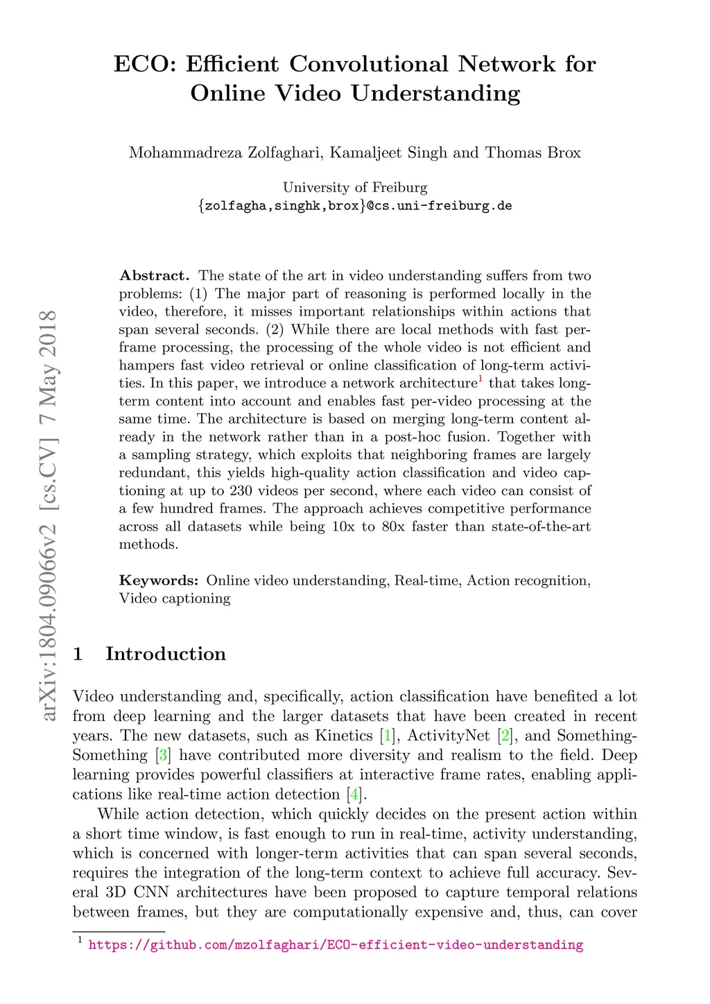 ECO: Efficient Convolutional Network for Online Video Understanding