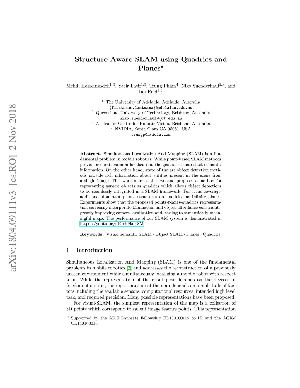 Structure Aware SLAM using Quadrics and Planes