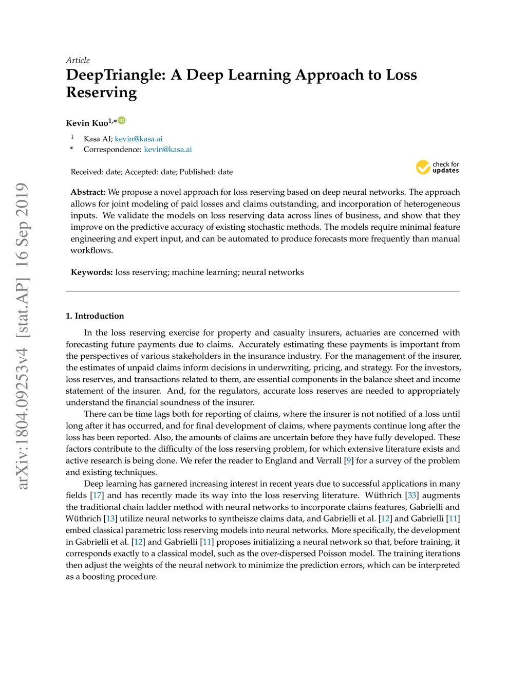 DeepTriangle: A Deep Learning Approach to Loss Reserving