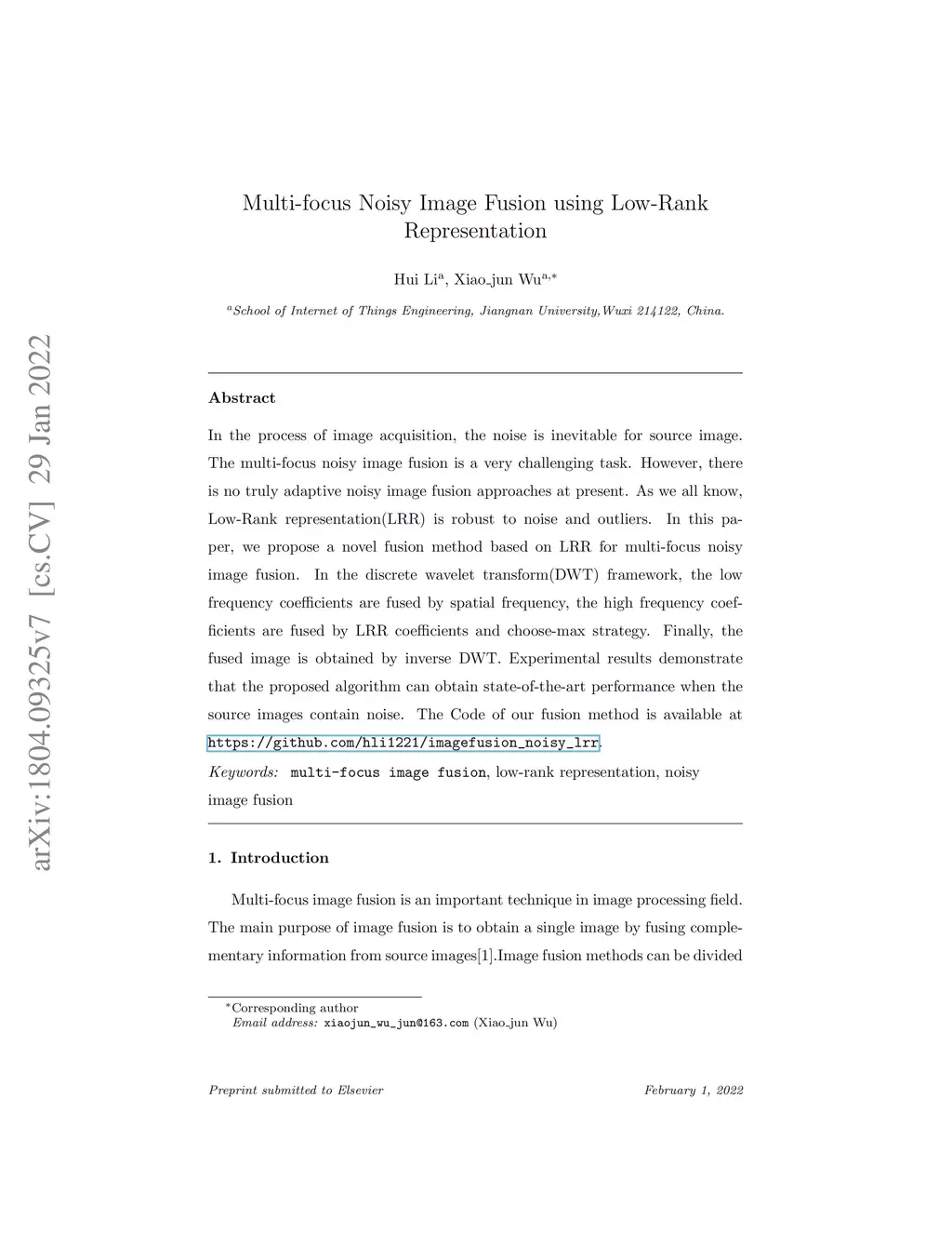 Multi-focus Noisy Image Fusion using Low-Rank Representation
