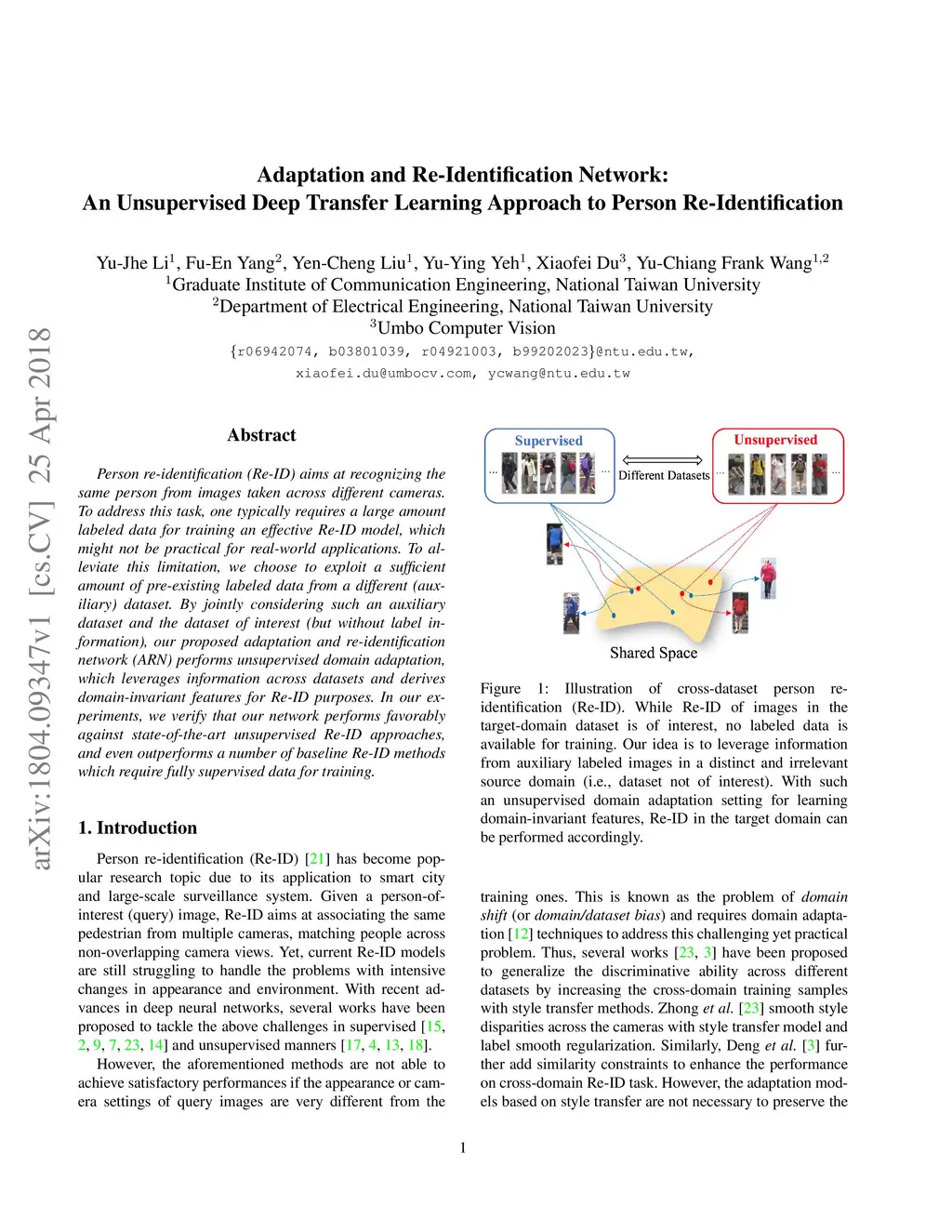 Adaptation and Re-Identification Network: An Unsupervised Deep Transfer