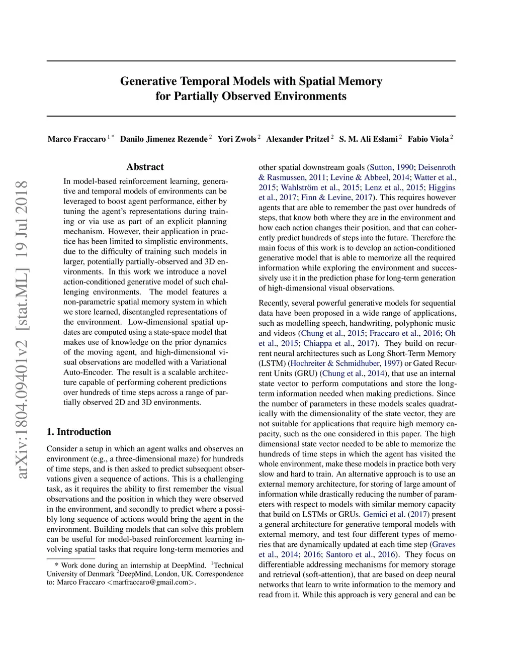 Generative Temporal Models with Spatial Memory for Partially Observed Environments