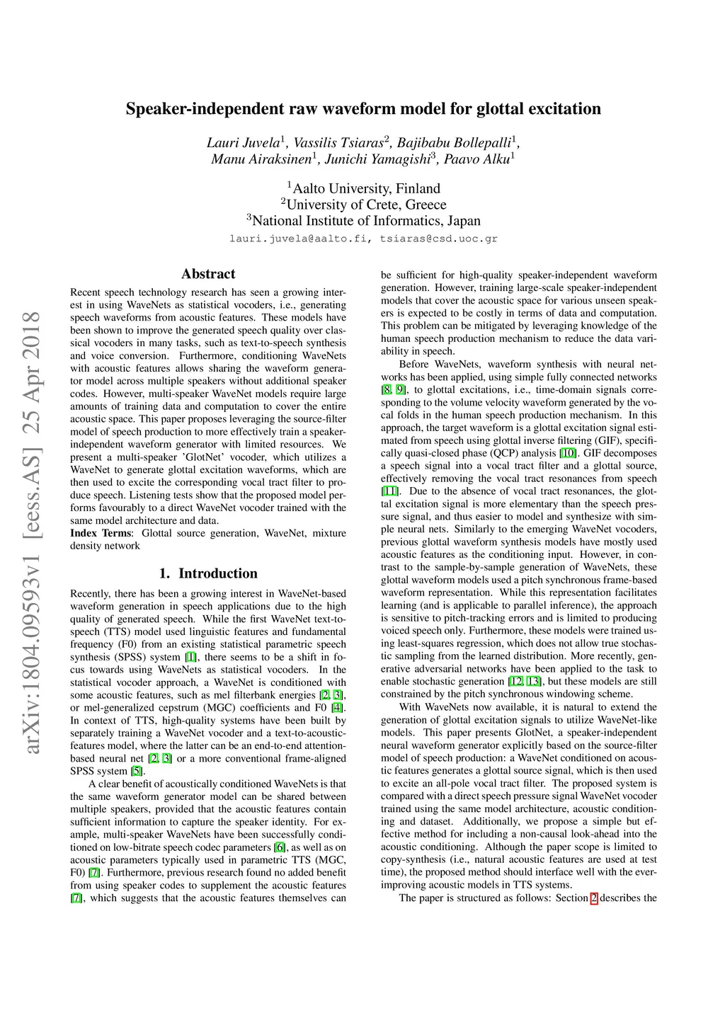 Speaker-independent raw waveform model for glottal excitation