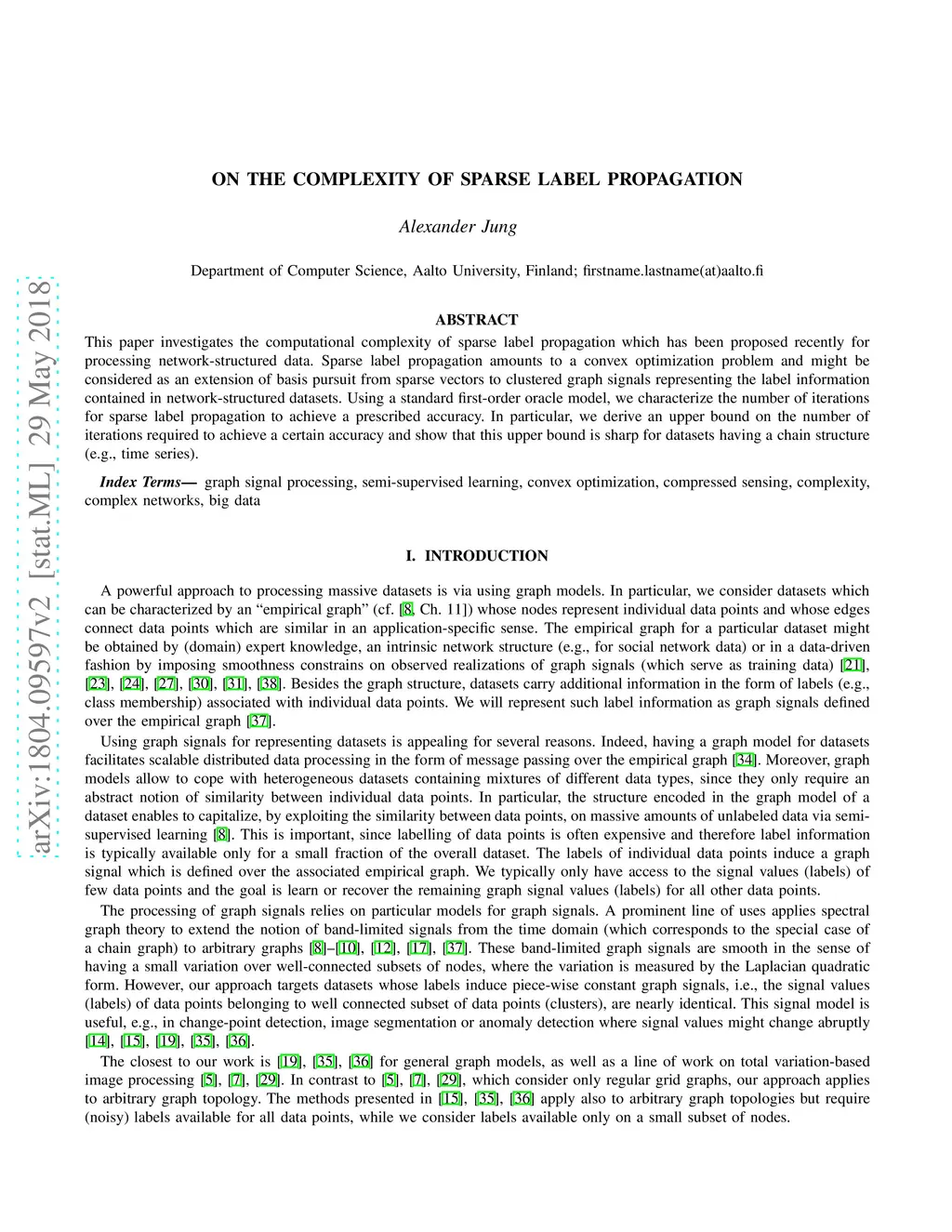 On The Complexity of Sparse Label Propagation