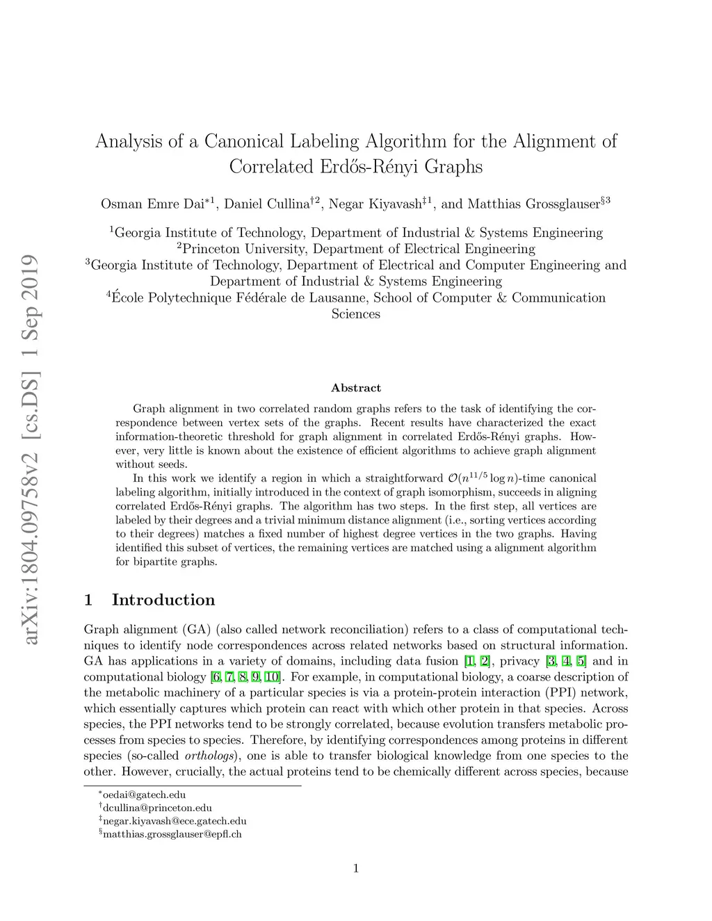 Analysis of a Canonical Labeling Algorithm for the Alignment of
