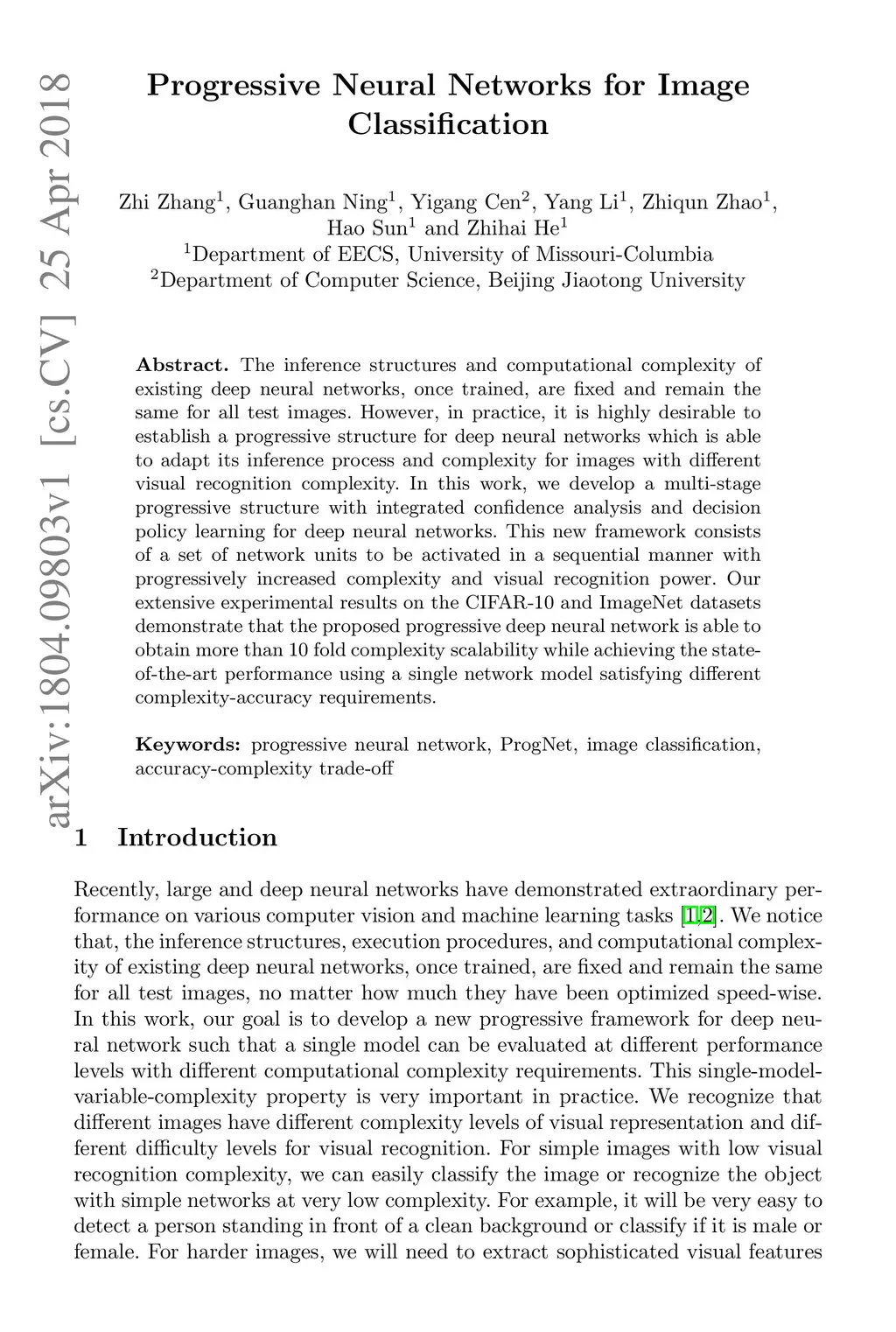 Progressive Neural Networks for Image Classification