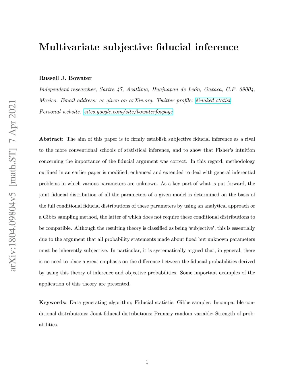 The aim of this paper is to firmly establish subjective fiducial inference as a rival to the more conventional schools of statistical inference, and to show that Fisher's intuition concerning the importance of the fiducial argument was correct. In this regard, methodology outlined in an earlier paper is modified, enhanced and extended to deal with general inferential problems in which various parameters are unknown. As a key part of what is put forward, the joint fiducial distribution of all the parameters of a given model is determined on the basis of the full conditional fiducial distributions of these parameters by using an analytical approach or a Gibbs sampling method, the latter of which does not require these conditional distributions to be compatible. Although the resulting theory is classified as being "subjective", this is essentially due to the argument that all probability statements made about fixed but unknown parameters must be inherently subjective. In particular, it is systematically argued that, in general, there is no need to place a great emphasis on the difference between the fiducial probabilities derived by using this theory of inference and objective probabilities. Some important examples of the application of this theory are presented.