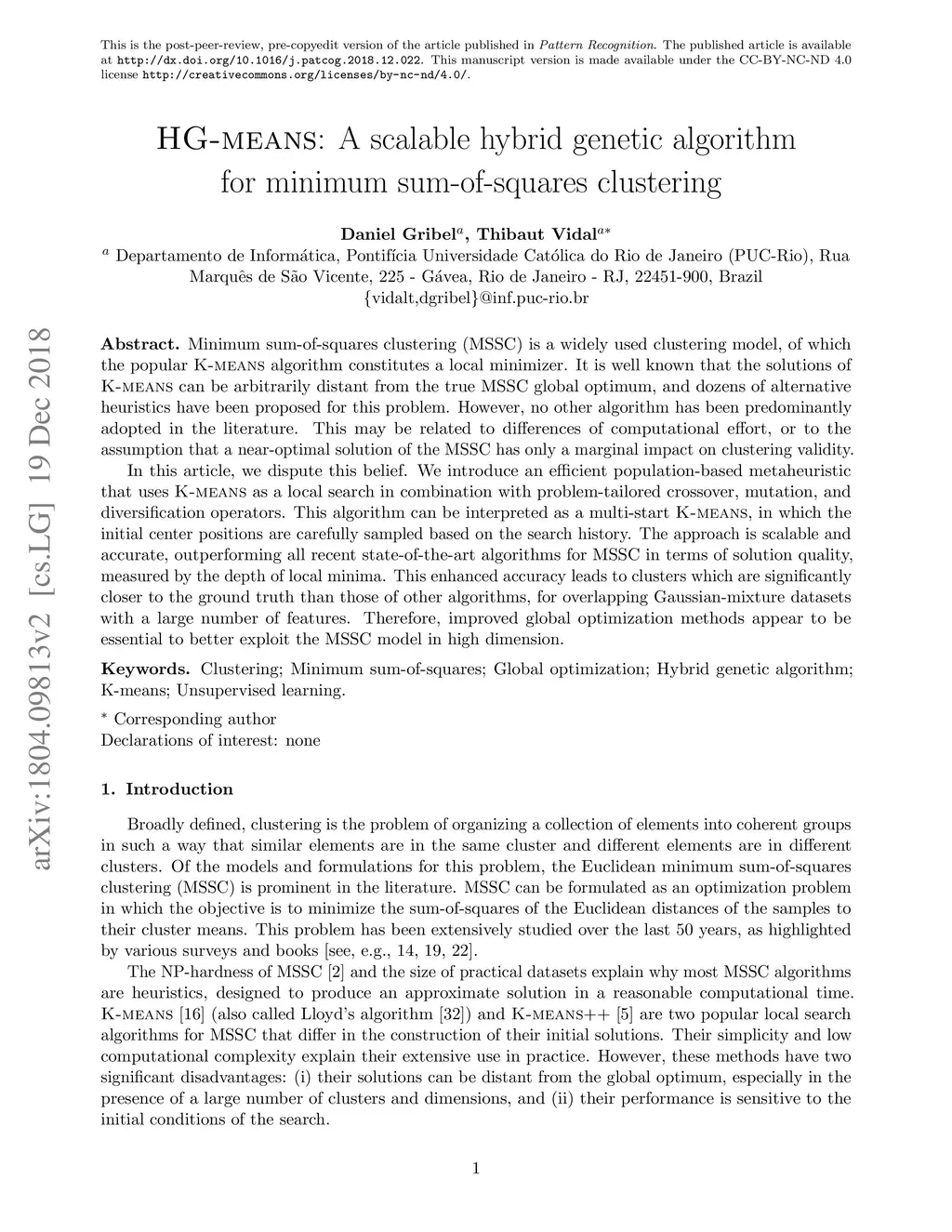 HG-means: A scalable hybrid genetic algorithm for minimum sum-of-squares