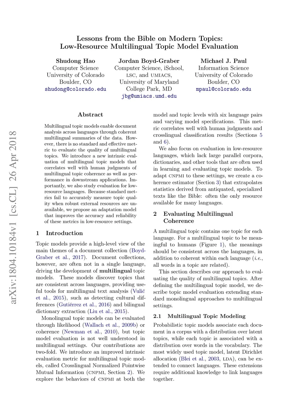 Lessons from the Bible on Modern Topics: Low-Resource Multilingual Topic