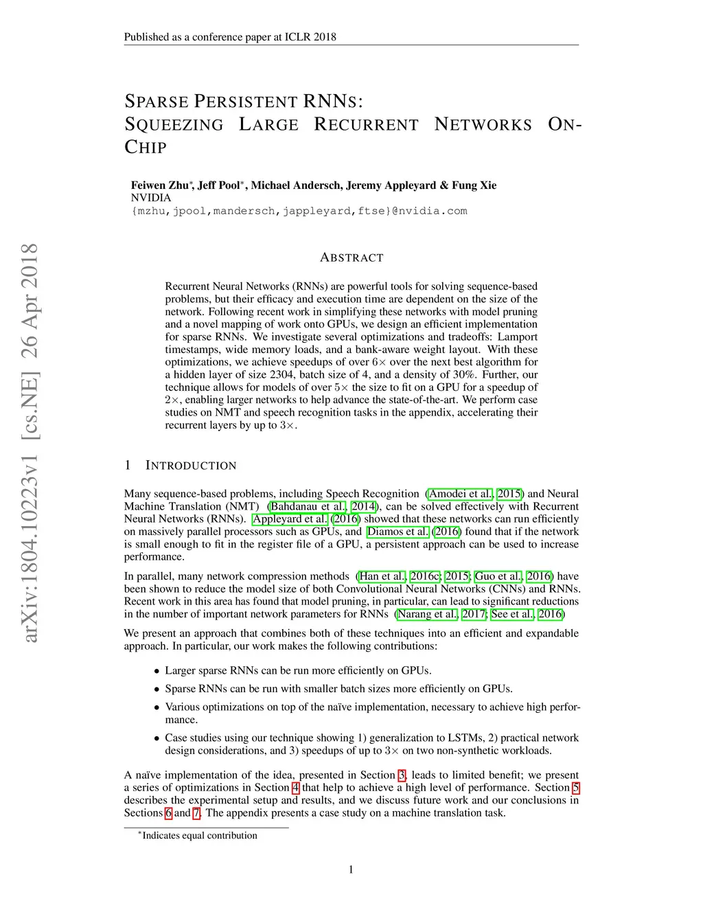Sparse Persistent RNNs: Squeezing Large Recurrent Networks On-Chip