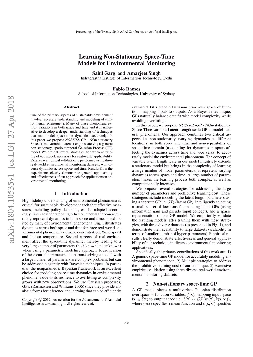 One of the primary aspects of sustainable development involves accurate understanding and modeling of environmental phenomena. Many of these phenomena exhibit variations in both space and time and it is imperative to develop a deeper understanding of techniques that can model space-time dynamics accurately. In this paper we propose NOSTILL-GP - NOn-stationary Space TIme variable Latent Length scale GP, a generic non-stationary, spatio-temporal Gaussian Process (GP) model. We present several strategies, for efficient training of our model, necessary for real-world applicability. Extensive empirical validation is performed using three real-world environmental monitoring datasets, with diverse dynamics across space and time. Results from the experiments clearly demonstrate general applicability and effectiveness of our approach for applications in environmental monitoring.